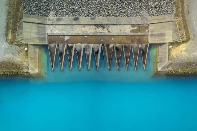 The Ohau Canal overflow weir, as seen from above.